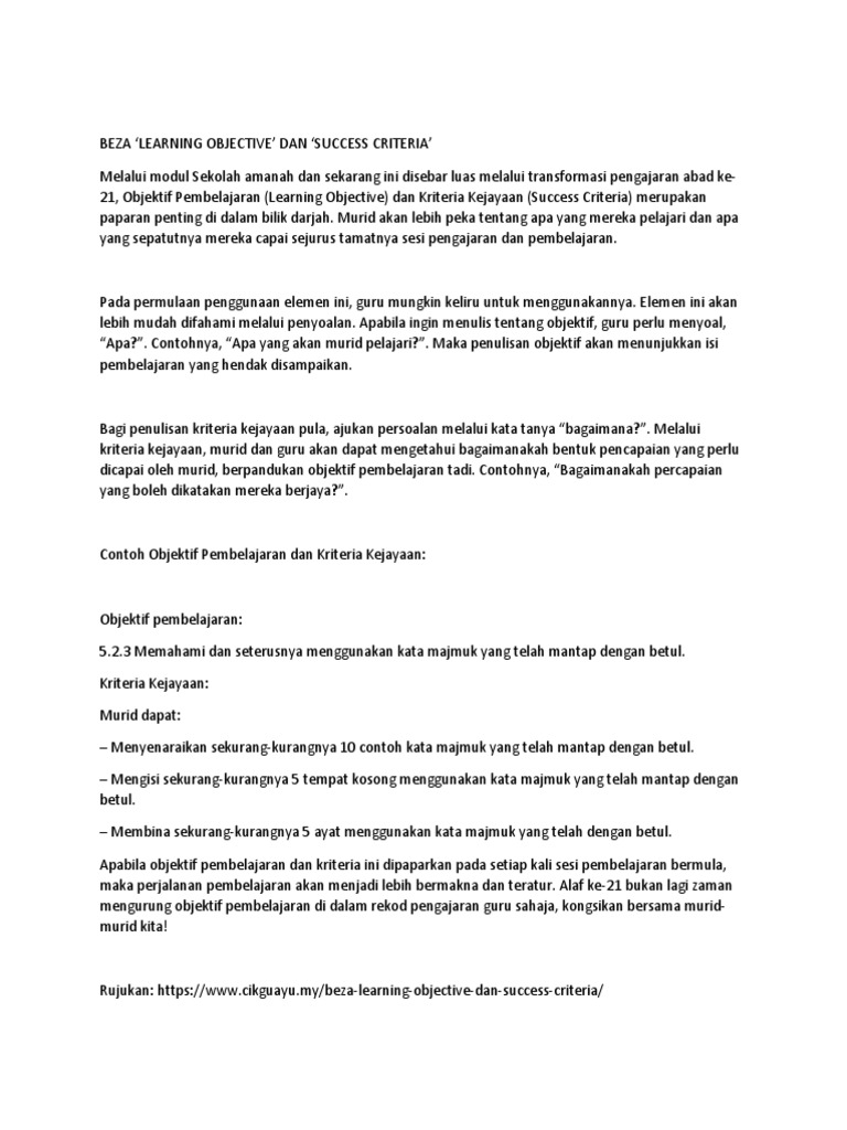 Beza Objektif Dan Kriteria Kejayaan Pdf